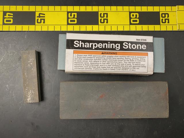 | Sharpening stones come in a range of grits. You start with coarse stones to get out any nicks and shape the blade overall, then switch to finer grits to refine the edge. Even finer grits are covered in the next section on Sandpaper. |