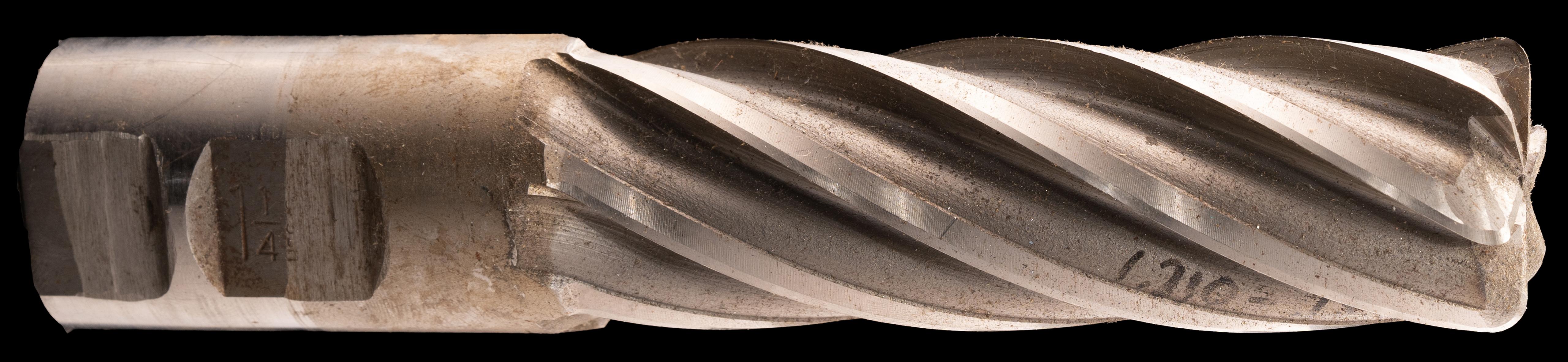 Typical milling machine bits look superficially like drill bits, but they are meant mostly for cutting sideways, not down. (Some can also cut downwards like a drill, others can’t.)
