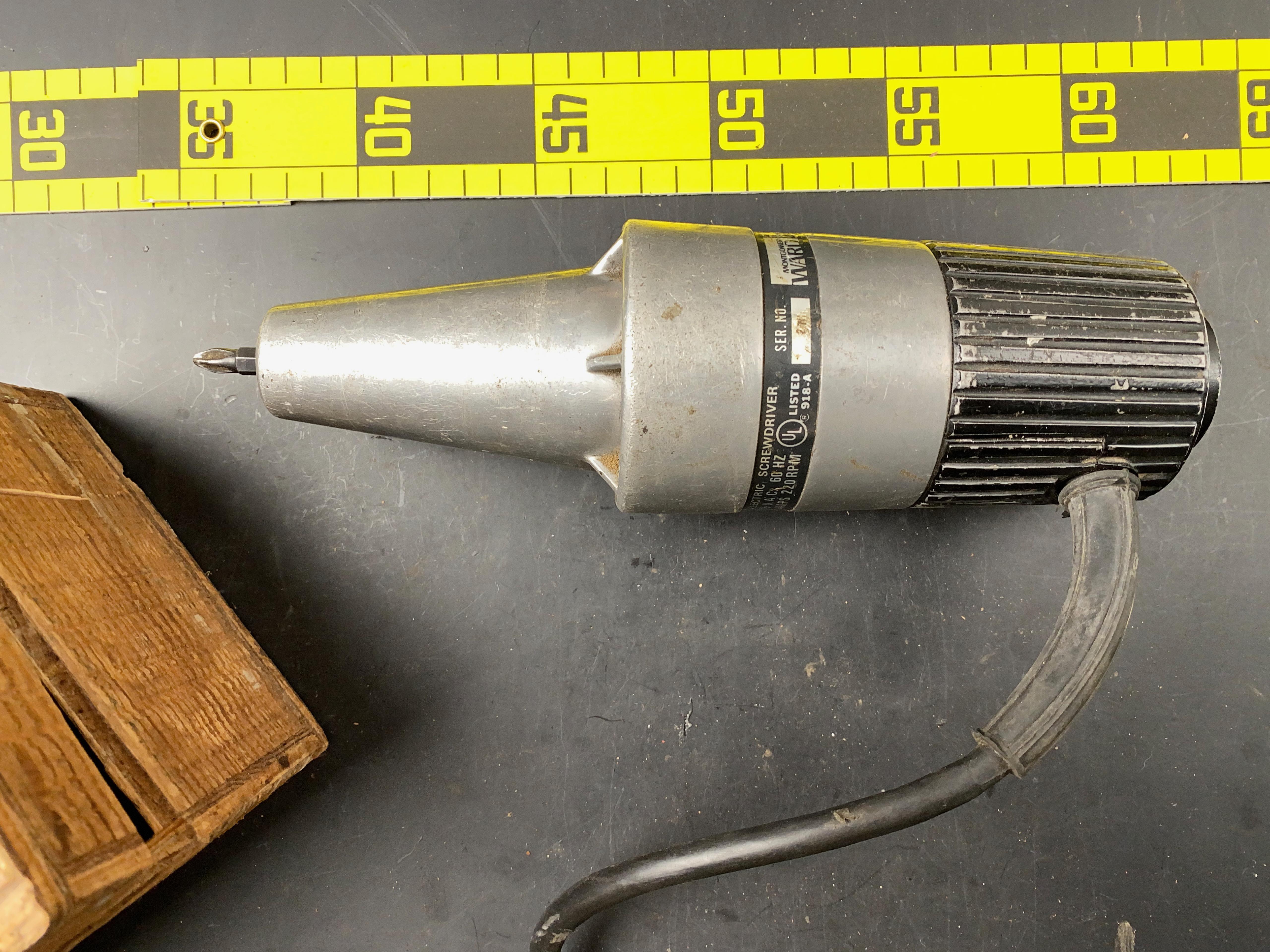 Electric screwdrivers don’t have to be gun-shaped. This antique pacifist version has a large enough diameter that you can hold it quite effectively against the turning force it generates.